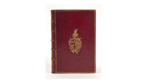 RELIURE FRANÇAISE DU XVIIIe SIÈCLE. Maroquin rouge, décor doré, armes au centre des plats, triple filet en encadrement avec rosette aux angles, dos à nerfs très orné, tranches dorées