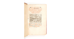 In-8 (145 x 87 mm). Titre imprimé en rouge et noir. Réglé en rouge. Initiales gravées sur bois.