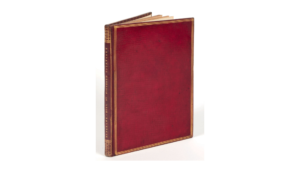 RELIURE DU XVIIIe SIÈCLE. Maroquin rouge, décor doré, triple encadrement, dos long orné de croisillons avec titraison verticale, tranches dorées, gardes doublées de moire bleu.