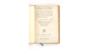 [MINIERES, Olivier de] — Les Regretz, complaintes et confusion de Jean Valette dit de Nogaret. — Angoulême, pour l'Aucteur, 1589. — EXEMPLAIRE SOIGNEUSEMENT RELIÉ. — In-8 (164 x 105 mm).