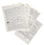 On joint, du même : Le Fou d'Elsa... [vers 1973]. Manuscrit autographe signé, complet en 6 ff. in-4 au stylo à bille noir, bleu et au feutre noir, avec des ratures et des corrections. Beau et long texte d'Aragon sur l'adaptation théâtrale de son poème par Alain Werner. La pièce devait initialement être représentée à l'Espace Pierre Cardin en 1973 ; elle fut toutefois créée au festival de Baalbek, au Liban, en 1974.