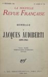 On joint : Hommage à Jacques Audiberti. Paris, NRF, 1965. In-8, broché. Ce numéro spécial de la Nouvelle Revue Française (n°156) est accompagné d'une lettre autographe signée de Dominique Aury relative aux choix des textes qui le composent. Anne-Cécile Desclos (1907-1998), alias Dominique Aury, alias Pauline Réage, a été, un quart de siècle durant, l'influente adjointe de la direction de la NRF. Mouillure aux premiers feuillets, petite déchirure à la couverture.