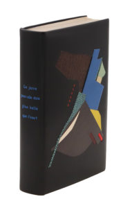 Paris, Gallimard, 1951. In-12, box brun, sur les plats décor de pièces de box bleu, gris et jaune en relief, pièce de cuir à gros grain et reptile, dos lisse avec titre à froid, doublure et gardes de daim bleu, tête dorée, non rogné, couverture et dos, étui (Paule Ameline 2002).Édition originale.