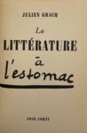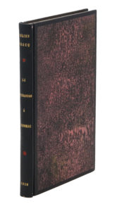 Paris, José Corti, 1950. In-16, maroquin noir à cadre, plats de papier décoré, dos lisse orné de deux petits fleurons rouges, tête dorée, non rogné, couverture et dos (Devauchelle).Édition originale de ce célèbre pamphlet contre le milieu littéraire français.