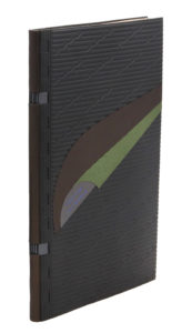 Paris, Centre Georges Pompidou, 1977. Grand in-8, plats en rim noir moulé, pièce de titre semi-circulaire de box brun sur le premier plat bordée de deux pièces de box gaufré brun et vert, dos de box brun à coutures apparentes sur deux lanières de box gaufré argenté, doublure de nubuck vert, non rogné, couverture et dos, chemise et étui (J. de Gonet, 2002).Édition originale de ce texte composé pour l'inauguration du Centre Georges Pompidou.