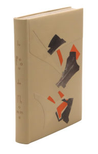 Paris, Nouvelle Revue Française, 1926. Petit in-4, bradel box crème, plats ornés d'un décor en relief de pièces de cuir orangé, gris et crème, dos lisse avec titre à froid, doublure et gardes de daim beige, tête dorée, non rogné, couverture et dos, chemise et étui (Paule Ameline 2002).Édition originale, dédiée à Pablo Picasso.
