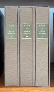 Édimbourg, Archibald Constable ; Londres, Hurst & Robinson, 1823. 3 volumes in-8, demi-toile verte, dos lisse, pièce de titre typographique, non rogné, chemises et étuis modernes (Reliure de l'éditeur).Édition originale de ce célèbre roman historique par l'auteur d'Ivanhoé.
