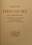 COLETTE — Discours de réception à l'Académie royale belge.