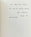 Des éclairs. Paris, Minuit, 2010. In-12, broché. Édition originale. Un des 109 ex. sur vergé, seul grand papier. Envoi autographe signé.