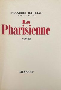 La Pharisienne. Paris, Grasset, 1941. In-12, broché, à toutes marges. Édition originale. Un des 38 exemplaires sur vélin d'Arches. Envoi autographe signé.