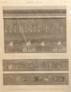 Thèbes, Karnak. Gravure originale (vol. III, planche 34) extraite de la seconde édition (P., Panckoucke, 1821) de la Description de l'Egypte ou Recueil des observations et recherches faites en Egypte pendant l'expédition française, publié par les ordres de Sa Majesté l'Empereur Napoléon le Grand. Dim. sous cadre : +/- 77 x 61 cm, qq. rouss.