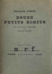 Douze petits écrits. Paris, NRF, 1926. In-8, box brun, plats rapportés en papier imprimé, dos lisse avec titre à froid, couverture et dos, étui (A. Boige, 1999). Édition originale, ornée avec d’un portrait en lithographie par Mania Mavro. Un des 68 exemplaires hors commerce sur vélin.