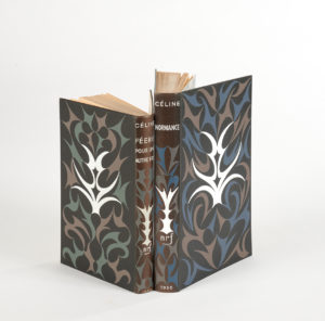Louis-Ferdinand CÉLINE. — Féérie pour une autre fois. — Paris, NRF, 1952. – Féérie pour une autre fois II. — Normance. — Ibid., id., 1954. — Ensemble 2 volumes in-12 et in-8, cartonnages illustrés d’après les maquettes de Paul Bonet.