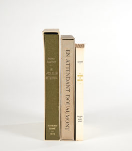 – Robert BRASILLACH. Le Voleur d’étincelles. Bruxelles, Roger Wastiau, 1970. In-4, en feuilles, chemise et étui. 15 illustrations à pleine page d’Amandine Doré. Un des 10 sur Japon (n° 15) contenant une aquarelle originale signée et 3 états des illustrations.