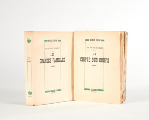 [GONCOURT 1948].—Maurice DRUON. — La Fin des hommes. – I. Les Grandes familles. – II. La Chute des corps. — Paris, Julliard, 1948-1950. — 2 volumes in-8, brochés.