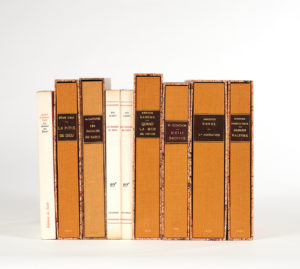 – Anna LANGFUS. Les Bagages de sable. Paris, NRF, 1962. Un des 30 sur vélin pur fil (n° 12). Avec deux autres exemplaires du même tirage, sans la chemise et l’étui (n° 15 et 29).