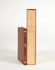 Les Silences du colonel Bramble. Paris, La Maison française, 1949. In-4, en feuilles. 20 cuivres originaux à pleine page et 24 lettrines de Berthommé Saint-André, ces dernières gravées sur bois par Gérard Angiolini. Un des 20 de tête sur pur chiffon, contenant un cuivre et une suite et enrichi d’un lavis original.