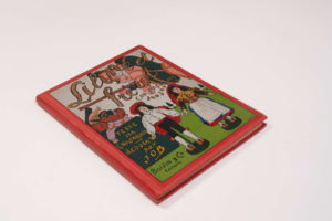 Georges MONTORGUEIL. — Liline et frérot au pays des joujoux. — Paris, Boivin, s.d. (vers 1907). — In-4, percaline rouge ornée d'un grand décor polychrome sur le premier plat (Reliure de l'éditeur).