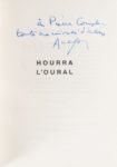 16. ARAGON (Louis). Hourra l'Oural. Poèmes. Paris, Denoël et Steele, 1934, in-12, demi-maroquin noir, dos lisse orné de filets à froid, auteur et titre en lettre dorées au dos répétés dix fois, alternant majuscule et minuscule, petits coins de maroquin noir rectangulaire, plats de toile rouge, tête dorée sur brochure, couverture et dos conservés, chemise, étui (P.-L. Martin, 1958). Édition originale. Exemplaire numéro 1 sur papier de Hollande, premier papier. Envoi de Louis Aragon « à Pierre Consten toute ma naïveté d'alors Aragon »