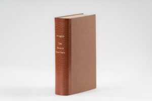 18. ARAGON (Louis). Les Beaux quartiers. Roman. Paris, Les Éditions Denoël et Steele, 1936, in-8, demi-maroquin havane à petits coins, dos lisse, auteur et titre dorés, tête dorée sur brochure, couverture et dos conservés (P.-L. Martin). Édition originale. 1/25 exemplaires sur Pur Fil (après 7 Chine). Bel envoi de Louis Aragon : « pour cet ami innominé comme l'artère qui charrie le plus de sang dans l'homme. Aragon ».