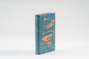 21. ARAGON (Louis). Les Yeux d'Elsa. Neuchâtel, Éditions de la Baconnière, collection des Cahiers du Rhône, 1942, in-12 carré, maroquin lapis-lazuli, dos lisse mosaïqué d'un grand E en maroquin gris répété trois fois et d'un petit A bleu nuit, auteur, titre et date dorés, décor du dos répété sur les plats en semé, arabesques mosaïquées de box jaune, orange, brun clair et brun foncé, gardes de daim brun, tranches dorées sur brochure, couverture et dos conservés, chemise, étui (Paul Bonet, 1965). Édition originale. 1/20 exemplaires sur Hollande (n° IX), premier papier. Strophe autographe signée de Louis Aragon extrait du poème Les Yeux d'Elsa : « Il advint qu'un beau soir l'univers se brisa Sur les récifs que les naufrageurs enflammèrent Moi je voyais briller au dessus de la mer Les yeux d'Elsa les yeux d'Elsa les yeux d'Elsa Aragon » En dessous du titre on trouve la signature d'Elsa. Exceptionnel exemplaire.