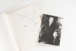 28. ARAGON (Louis). Elsa. Poème. Paris, Gallimard, 1959, in-8 carré, broché. Édition originale. 1/8 exemplaires hors commerce (G) sur vélin pur fil Lafuma (second papier). Bel envoi d'Aragon qui reproduit une strophe d'un poème à l'encre bleue. « à Pierre Consten, ces vers toute la nuit sont répétés répétés Aragon ». En dessous à l'encre noir signature d'Elsa. Joint une photographie d'Aragon et d'Elsa Triolet.