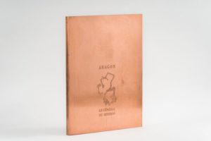 35. ARAGON (Louis). Le Général de division. Paris, Nouveau Clarté, (1969), in-folio, en feuilles sous couverture gaufrée. Édition originale de ce discours militant prononcé le 10 juin au Palais des Sports et qui dénonce « L'entreprise totalitaire du général de Gaulle ». 1/10 exemplaires sur papier Richard de Bas signé par l'auteur. Exemplaire n° 2 de Pierre Consten (manuscrit). (après un exemplaire comportant le manuscrit original et le dessin original de la maquette). Exemplaire recouvert d'une chemise avec un grand dessin original au crayon avec le nom de l'auteur et le titre. L'ouvrage est placé dans un étui en cuivre avec le nom de l'auteur, le titre de l'ouvrage et un dessin, ciselés sur le premier plat.