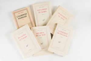 72. CABANIS (José). Réunion de six ouvrages en édition originale, publiés chez Gallimard, brochés. L' Auberge fameuse. 1953. 1/63 exemplaires sur vélin pur fil. Envoi à Pierre Consten. - Le Bonheur du jour. 1960. 1/25 sur vélin pur fil. - Des Cartes du temps. 1962. 1/35 pur fil. - Les Jeux de la nuit. 1964. 1/55 sur vélin pur fil. - La Bataille de Toulouse. 1966. 1/65 sur vélin pur fil. - Des Jardins en Espagne. 1969. 1/70 sur vélin pur fil.