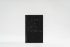 79. CAMUS (Albert). Lettres à un ami allemand. Paris, Gallimard, 1945, in-12, box noir, auteur et titre dorés en long au dos, plats recouverts de daim noir, titre mosaïqué en box noir sur le premier plat, tête dorée sur brochure, couverture et dos conservés, chemise, étui (P.-L. Martin, 1963). Édition originale. 1/25 pur fil (n° III).