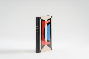 88. CAMUS (Albert). L'Été. Paris, Gallimard, Les Essais, 1954, in-12, box noir, dos orné d'un décor géométrique à froid, auteur et titre dorés, plats recouverts d'un décor géométrique en box glacé noir, bleu ciel, bleu foncé, orange , rouge et blanc, et de papier tilleul, tête dorée sur brochure, couverture et dos conservés, chemise, étui (Pierre-Lucien Martin, 1960). Édition originale. 1/25 sur Hollande van Gelder (n° 4).