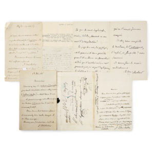 [MICHELET (Jules)] Quatre lettres envoyées à Hortensius Rousselin de Corbeau de Saint-Albin (1805-1878) 4 LAS, format in-8, datées respectivement de : (I) 1847 (cachet de la poste) avec adresse au dos : "Monsieur Hotensius de Saint Albin rue...