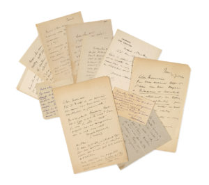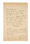 lettre porte un cachet de 1910 et l'autre est datée au crayon 1914. Une lettre autographe signée, datable de 1898 ou peu avant, évoque le texte de Joseph Reinach, Les Faussaires (1898) et La voix de l'Ile (1898) : "Mon secrétaire vous apportera demain un article La voix de l'Ile dont vous pourriez faire une plaquette comme l'Ile du diable et cinq articles sur Picquart". Une autre lettre évoque une autre œuvre de Reinach : "Je vous enverrai tout à l'heure une demi-douzaine de Démagogues et socialistes…". Cet ouvrage de satire politique parut chez Hachette en 1896.