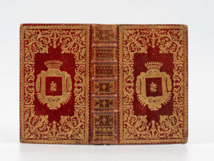 ALMANACH ROYAL. Paris, Debure, 1787 In-8, maroquin rouge, large dentelle dorée, armes au centre des plats, dos à nerfs orné, tr. dorées (Rel. de l'époque). Aux armes non identifiées (OHR, pl. 2075 ; couronne comtale, épervier tenu par une main...