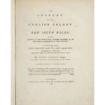description officielle de la colonie anglaise en Australie, La Nouvelle-Galles-du-Sud. Édition originale du premier volume, le second volume paraîtra en 1802. L'illustration contient : une carte en frontispice (petites taches), un plan dépliant, 4 illustrations in-texte, 18 planches montrant des paysages et villes en développement, et de belles scènes aborigènes. Taches et rousseurs, mouillures. Cachet de bibliothèque Petit-Quevilly, et mention manuscrite ancienne : "Offert à la bibliothèque de Quevilly. Laporte".