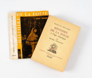 FOUCAULT (Michel) Histoire de la folie Paris, Plon, 1961. In-8, broché, jaquette illustrée. Édition originale. Restaurations à la jaquette.
