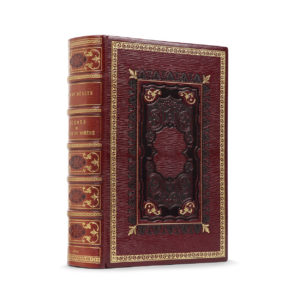 intérieure, doublure et gardes de faille bleue, doubles gardes de papier marbré, tranches dorées, couverture et dos, étui (Yseux Sr de Simier). Illustrée de 40 aquarelles de Charles Léandre, in et hors texte, gravées en couleurs par Eugène Decisy. Tirage à 300 exemplaires, celui-ci un des 200 sur papier vélin d’Arches comprenant en outre la décomposition en couleurs d’une planche. Il est enrichi de 2 états supplémentaires de chacune des gravures, en noir et en couleurs. Bulletin de souscription ajouté. Riche reliure d’Yseux dans le goût romantique. Ex-libris Léon Michel. Dos passé. Décharges pâles, marges un peu foncées.