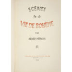 MURGER (Henry) Scènes de la vie de Bohème Paris, Romagnol, 1902. Fort volume grand in-8, maroquin bordeaux à long grain, roulette dorée en encadrement, plaque centrale à froid avec fleurons dorés aux angles, dos à nerfs orné, roulette...