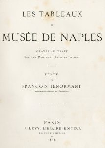 Les Tableaux du musée de Naples gravés au trait par les meilleurs artistes italiens. P., A. Lévy, 1868, 4°, 53 pl., rel. édit., demi-maroquin vert, dos orné de caissons dorés, pièce de titre, fleurons et tranches dorés (mors frottés et dos lég. frottés, coins écornés).