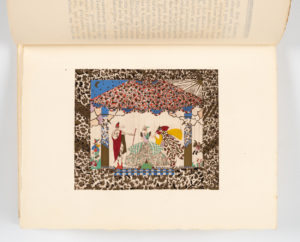 de nombreux décors et costumes de théâtre, ainsi que des céramiques. L'illustration comprend 16 planches hors-texte sous serpentes légendées, dont 6 au pochoir par Saudé. Tirage à 610 ex. numérotés, celui-ci un des 100 sur Arches à la cuve.