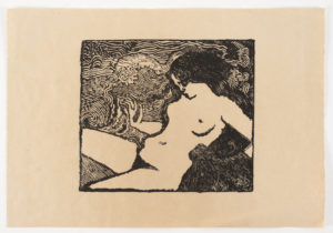 Aristide MAILLOL (1861-1944) La Vague Gravure sur bois. Épreuve du second état sur papier chamois, monogramme dans la planche. Légères traces de plis, transfert du sujet au verso Wood engraving, proof of the second state on buff paper,...