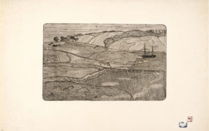Armand SEGUIN (1869-1904) Paysage avec chevaux et voilier. 1893. Eau-forte sur papier vergé Arches ivoire. Très belle et rare épreuve d'une édition par Seguin à petit nombre d'exemplaires. Une autre épreuve connue dans la collection...