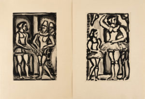 Georges ROUAULT (1871-1958) Parade (frontispice) - Amer citron - Jongleur - Ballerines Quatre planches du Cirque de l'Etoile Filante. A. Vollard éditeur 1938. Aquatintes en noir sur Japon Très bon état Four prints of Le Cirque de l'Etoile Filante,...