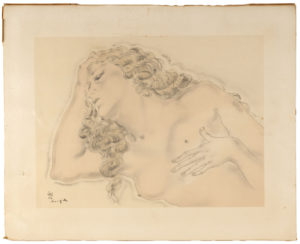 LÉONARD-TSUGUHARU FOUJITA (1886-1968) LA BLONDE ENDORMIE. 1931 Héliogravure en couleurs, signée dans la planche en bas à gauche. Petites déchirures sur les bords, feuille collée en plein sur carton, légères salissures en haut. Heliogravure in...