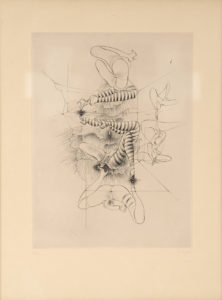 Hans BELLMER (1902-1975) Composition Gravure Signée en bas à droite, numérotée 31/100. Petit trou en haut à droite dans la planche, éraflure dans la marge inférieure. Engraving, signed lower right, justified 31/100, small hole in the upper...