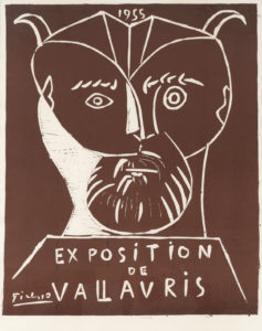 PABLO PICASSO (1881-1973) Tête de faune - Exposition de Vallauris, 1955 Linogravure sur papier Numéro 126/600 Imprimée par Hidalgo Arnera Vallauris Pliures et reste d'adhésifs Linocut on paper, justified 126/600, printed by Hidalgo Arnera in...