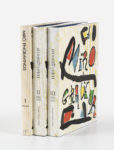 pliure en bas du feuillet portant le numéro de tirage : 1443, légères mouillures et traces au dos. VOL 3. en français, Incl. 2 bois gravés originaux, N° 1862. 3 volumes en bon état VOL 1. in English 3 woodcuts in colors executed by MIRO in J. Barbara's workshop in Barcelona, slight soiling ; VOL 2. in French, incl. 2 original woodcuts, small crease at the bottom of the sheet bearing issue no. 1443, slight soiling and marks on spine ; VOL 3. in French, incl. 2 original woodcuts, N° 1862, 3 volumes in good condition