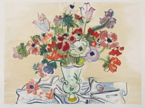 RAOUL DUFY (1877-1953), D'APRÈS ANÉMONES Lithographie en couleurs sur vélin de Rives Numérotée 16/250. Cachet sec de l'ADAGP Lithograph in colors on Rives wove paper, numbered 16/250, dry stamp of the ADAGP Feuillet : 58 x 76 cm : Sheet : 22 7/8...