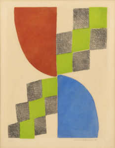 SONIA DELAUNAY (1885-1979) HUMANITE, 1970 Aquatinte en couleurs sur vélin Signée en bas à droite, datée '70' et numérotée '29/150'. Légèrement jaunie. Aquatint in colors on wove paper, signed lower right, dated '70' and justified '29/150',...