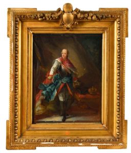 Ecole AUTRICHIENNE du XVIIIe siècle Portrait présumé de l'empereur Joseph II de Habsbourg Huile sur toile Hauteur : 38 cm Largeur : 29,5 cm Cadre en bois et stuc doré Rentoilé, restaurations.