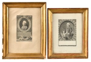 Deux gravures : -Le comte de Tressan. 20x13cm. -De Rossel Commandant les vaisseaux du Roi aux Indes. 20x15cm. Encadrés sous verre. A.B.E. XVIIIe siècle.